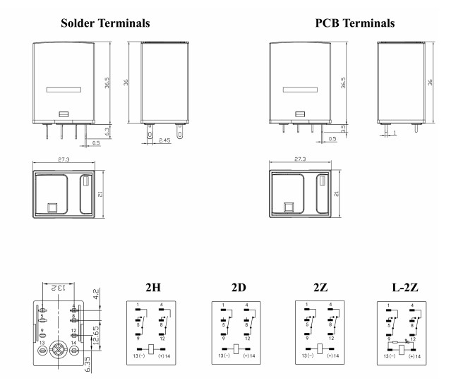 Estructura de contacto: 2Z significa 'doble tiroteo de doble polo ' (DPDT), proporcionando funciones flexibles de conmutación de circuitos para cumplir con los requisitos de control complejos.